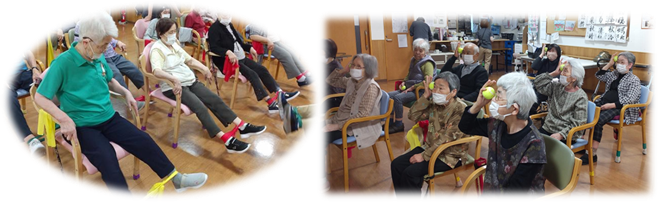 ダイニングデイケアでは療法士が作成したプログラムに基づいて、グループリハビリを行っております。